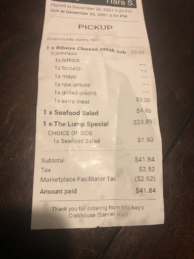 Mackey S Crab House Seafood Carryout Sub Shop In Baltimore Restaurant Menu And Reviews